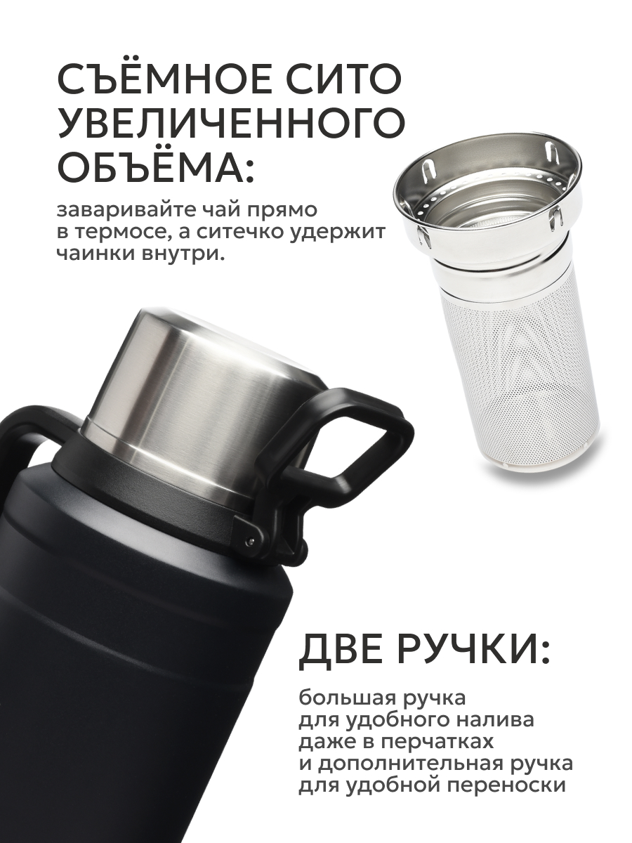 Термос 3.5л серии 206 чёрный с ситечком (уценка)