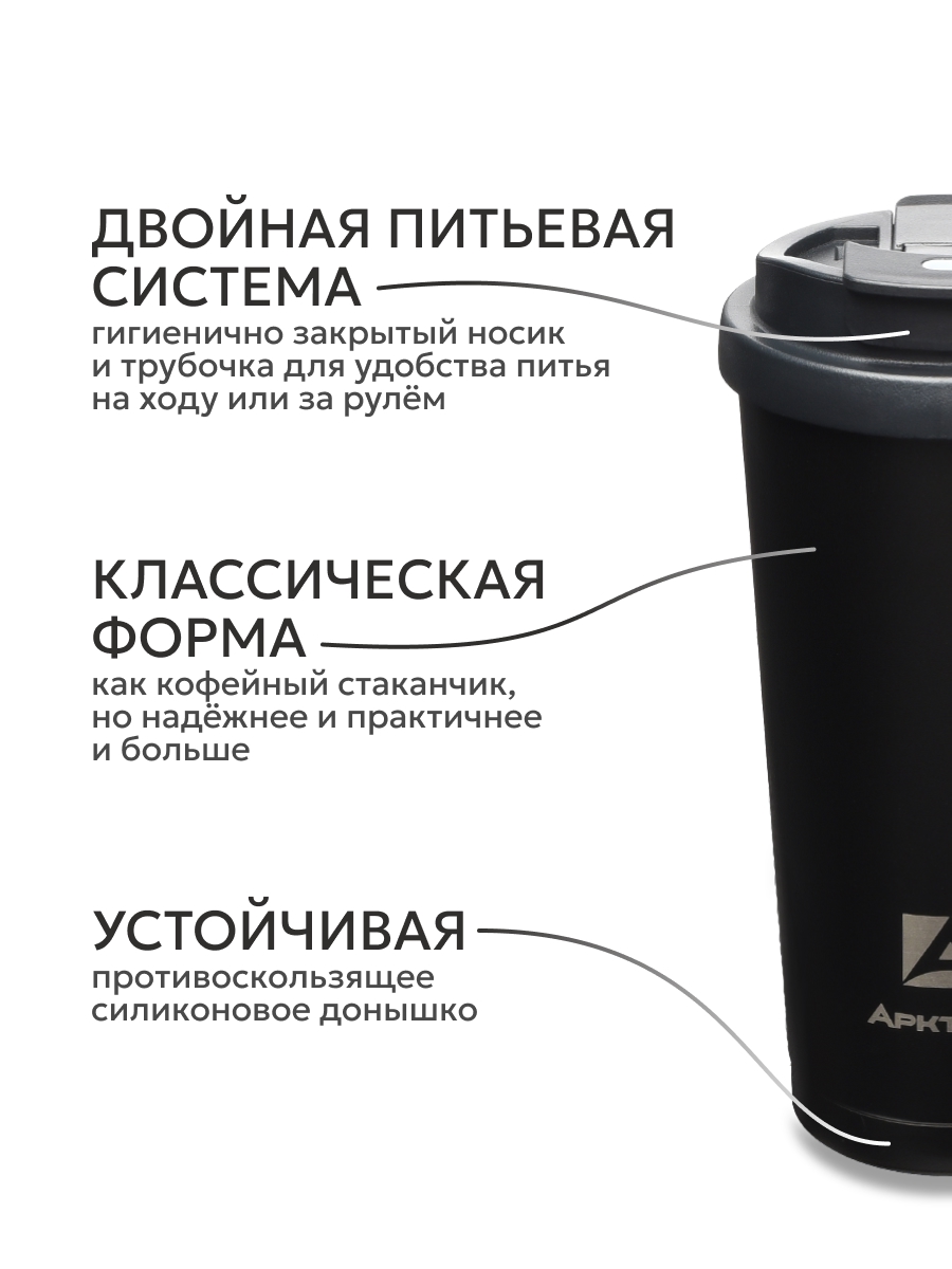 Термокружка 0.5л серии 714 чёрная с двойной питьевой системой